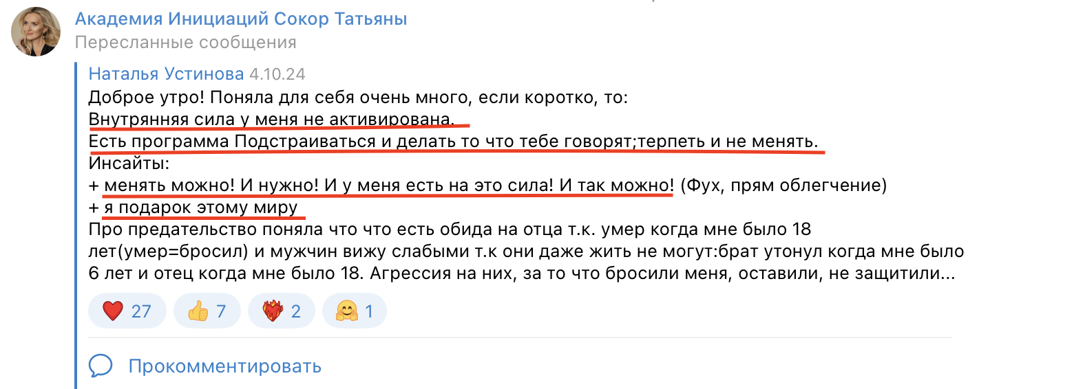 Тогда скорее переходите на мой канал и начинайте меняться благодаря инициациям