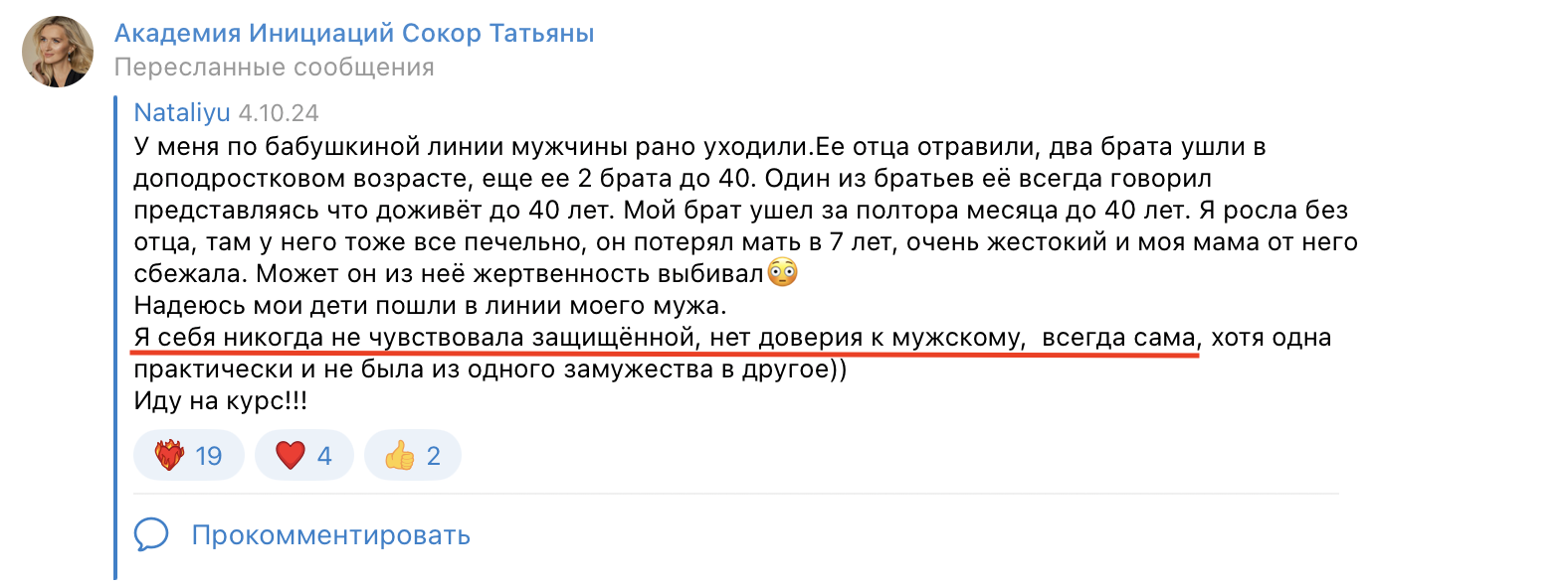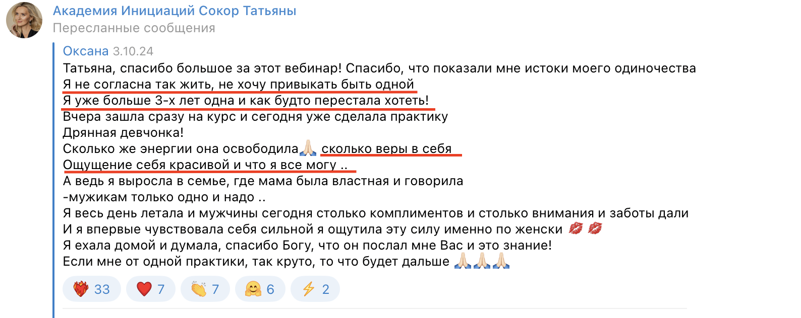 Также в канале постоянно провожу живые разборы с нашими участницами